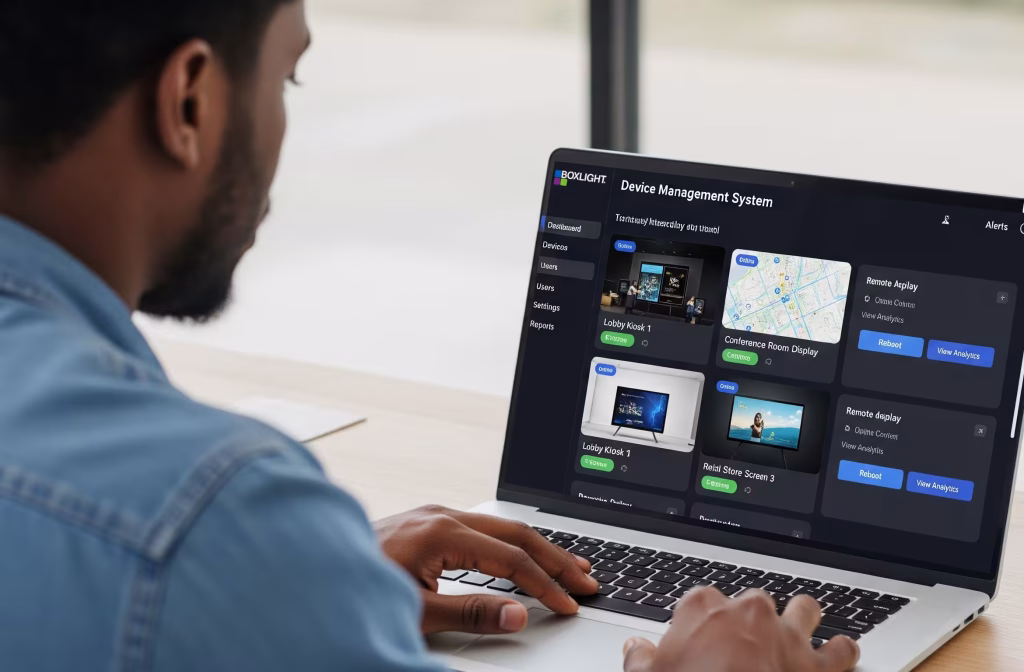 Remotely and centrally manage all of your organization’s Boxlight devices on an all-in-one console that lets you install, update, and delete apps, push firmware updates, and automate tasks such as startup and shutdown.
